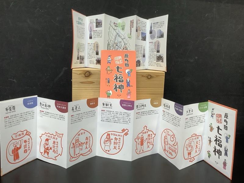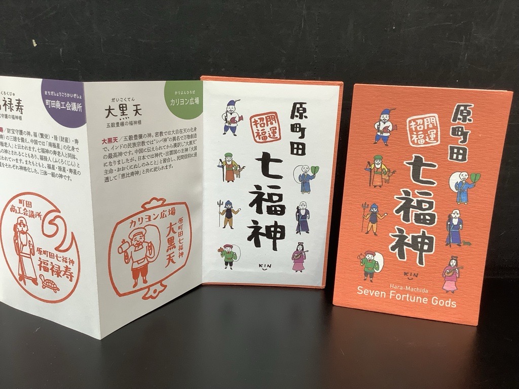 原町田七福神の色紙はスタンプ帳にリニューアルしました。これまでの色紙とは違い、蛇腹式で裏表にマップとスタンプを捺せるページが展開されており、かばんやポケットにスッと入って持ち運びしやすいサイズです。