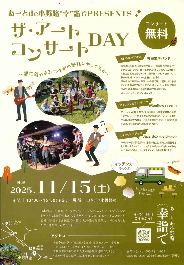 ザ・アート DAY コンサート 11月15日(土)13:00~16:00(予定) ヨリドコ小野路宿 ※無料