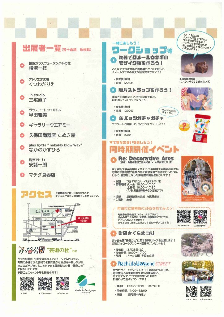 当日は、市にゆかりのある作家・ギャラリー・食器店が出展し、こだわりのガラスとやきものを販売するほか、やきものに関するワークショップ等も行います。