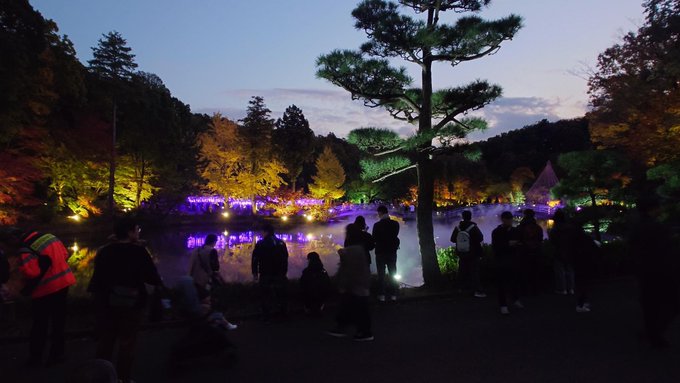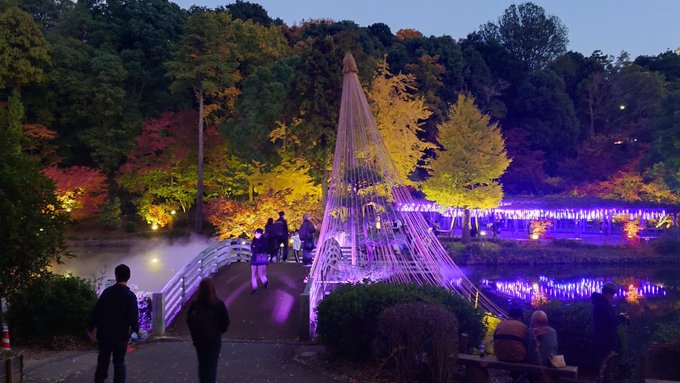 町田薬師池公園四季彩の杜 薬師池では、紅葉ライトアップが始まりました。