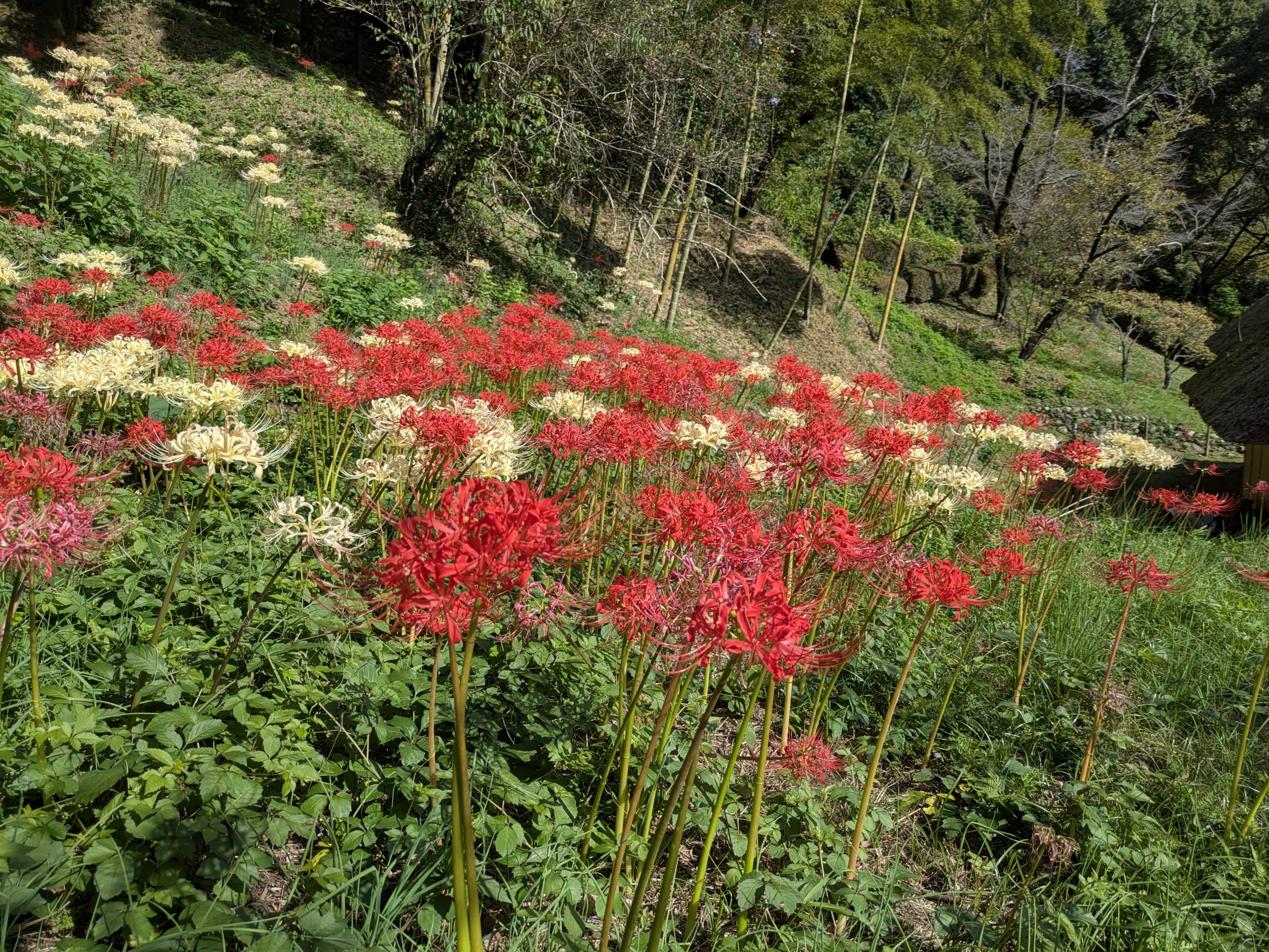 旧永井家住宅周辺のヒガンバナ(曼珠沙華)は引き続き見頃です。見頃は今週末まで続くと予想しています。