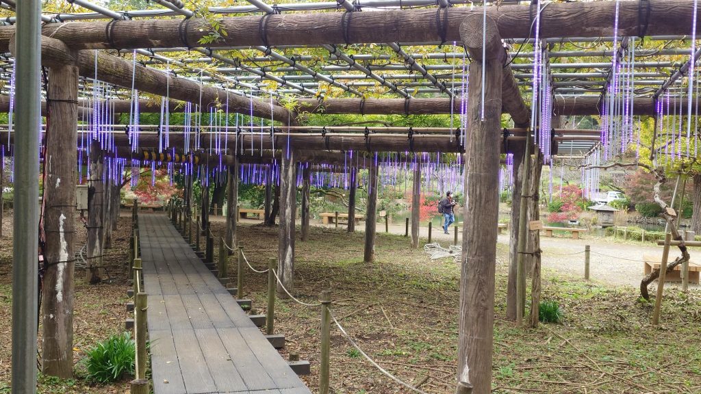 薬師池公園では紅葉が色づき始めています。松の雪吊りも完成しました。 今週末から、紅葉ライトアップも始まります。皆様のご来園をお待ちしております。 -
