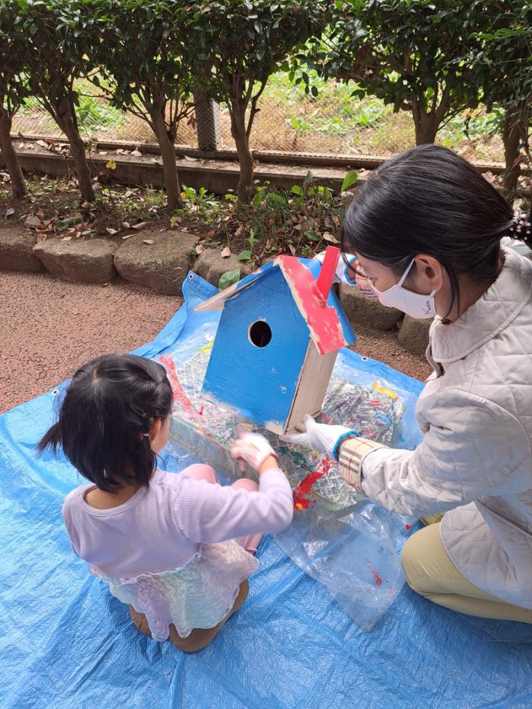 キットを組み立てて自由に色を塗ってオリジナルの巣箱をつくります(有料)。