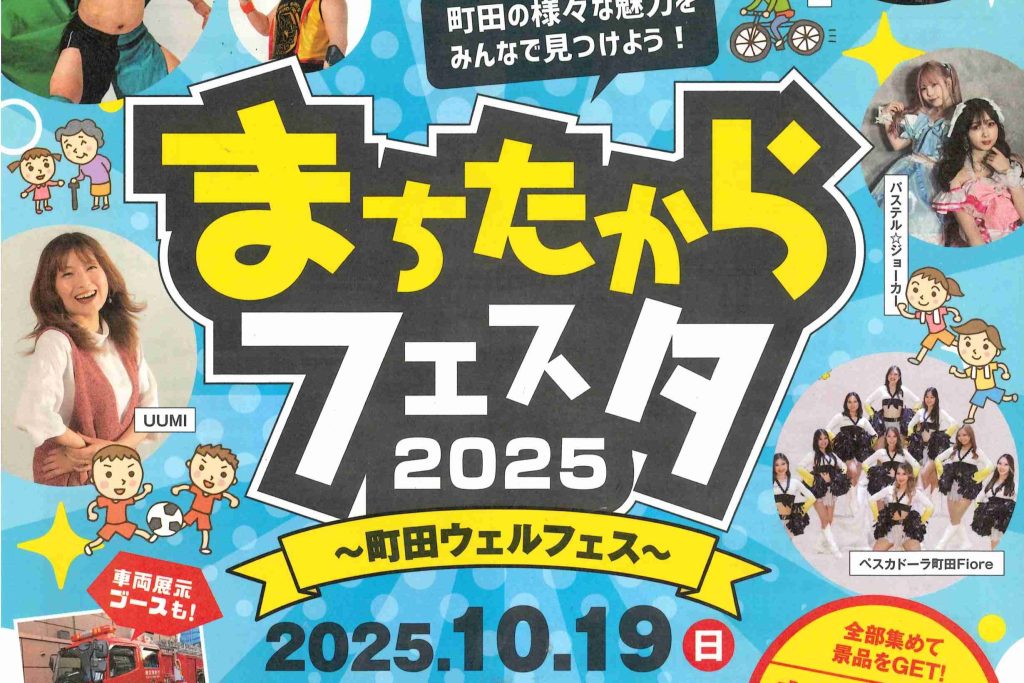 まちたからフェスタ2025~町田ウェルフェス~ 10月19日(日)11:00~16:00 JR町田駅前 原町田大通り ※参加無料/荒天中止 町田の魅力を「ウェルネス(心身の充実)」をテーマに楽しめる体験型フェスティバルです。 観光協会もブース出展いたします!ぜ... -