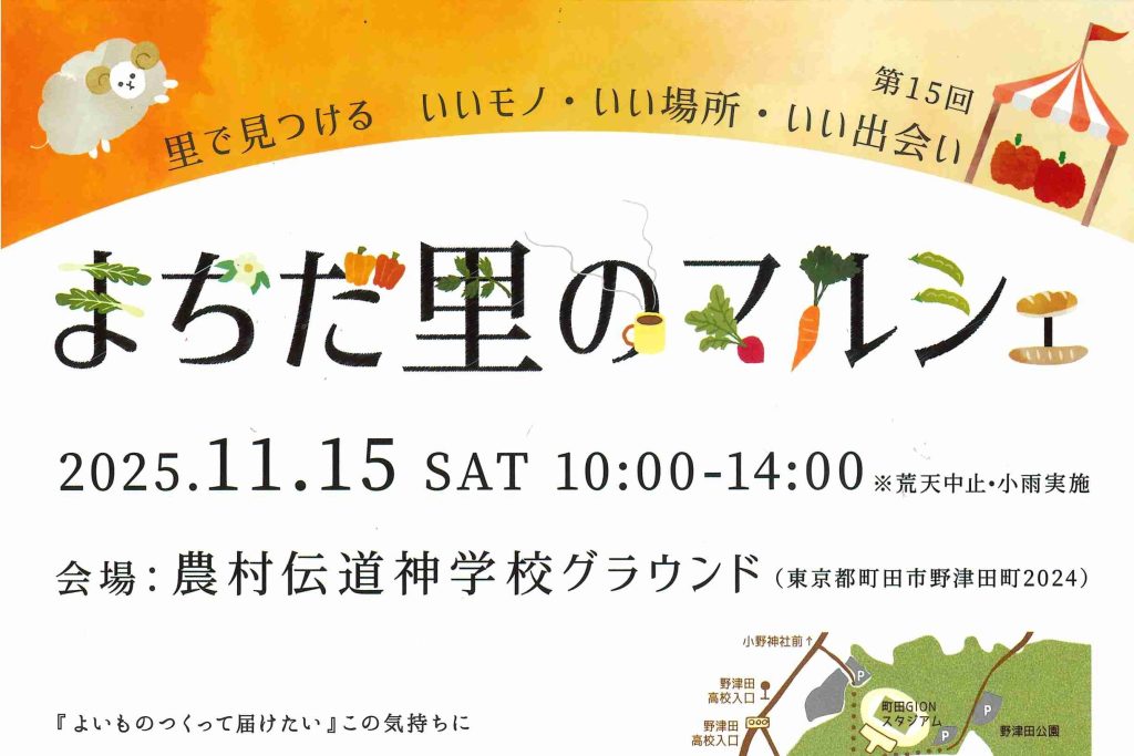 第15回 まちだ里のマルシェ ~里で見つける イイモノ・いい場所・いい出会い~ 11月15日(土)10:00~14:00 農村伝道神学校グラウンド(野津田町2024) ※荒天中止・小雨実施 -