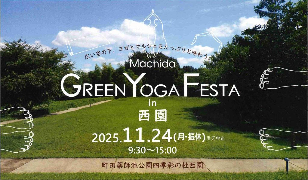 Machida Green Yoga Festa in 西園 11月24日(月・振休)9:30~15:00 ※雨天中止 町田薬師池公園四季彩の杜 西園 秋の空の下、豊かな緑の中でのヨガとマルシェのイベントです。スペシャルゲストレッスンは事前申込が必要ですが、その他のレッスンは当日... -